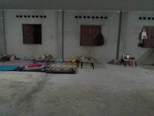 寮生はコンクリートの上で生活をしています。